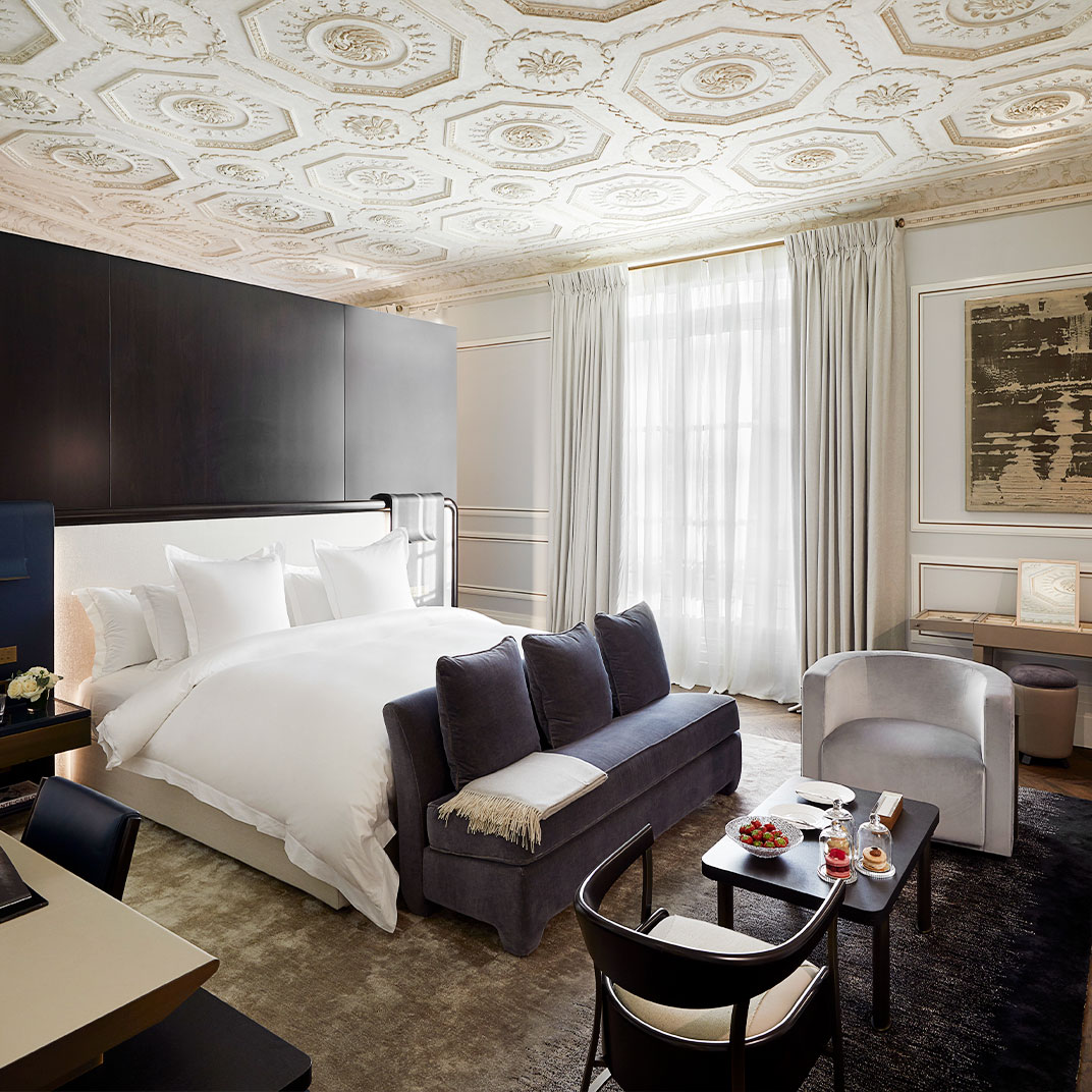 Normally the palace hotels are held up as the standard for Parisian hospitality, but a hotel that’s as luxurious as any of them, while containing a mere eleven rooms and suites, is operating on a whole different level. Any one of the suites is of virtually presidential status, and the rooms, while measurably smaller, lack for nothing in terms of comfort — at all levels you’ll find stunning marble baths, custom-made furniture by Promemoria, and handmade mattresses from Vispring.