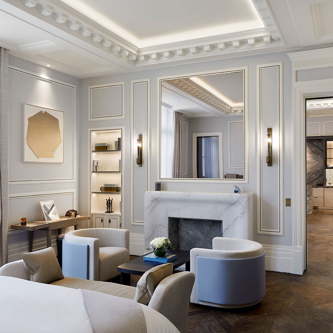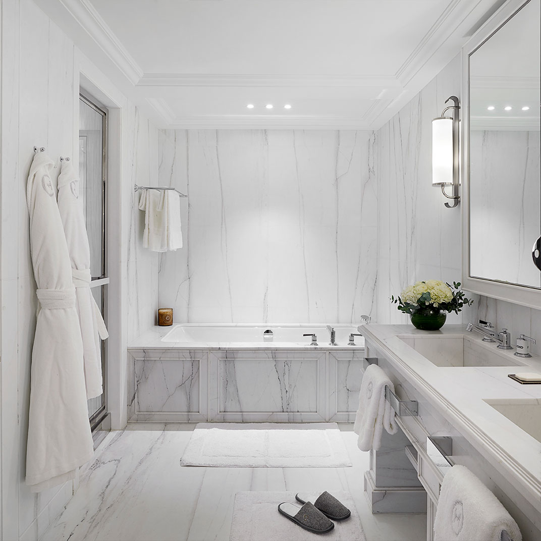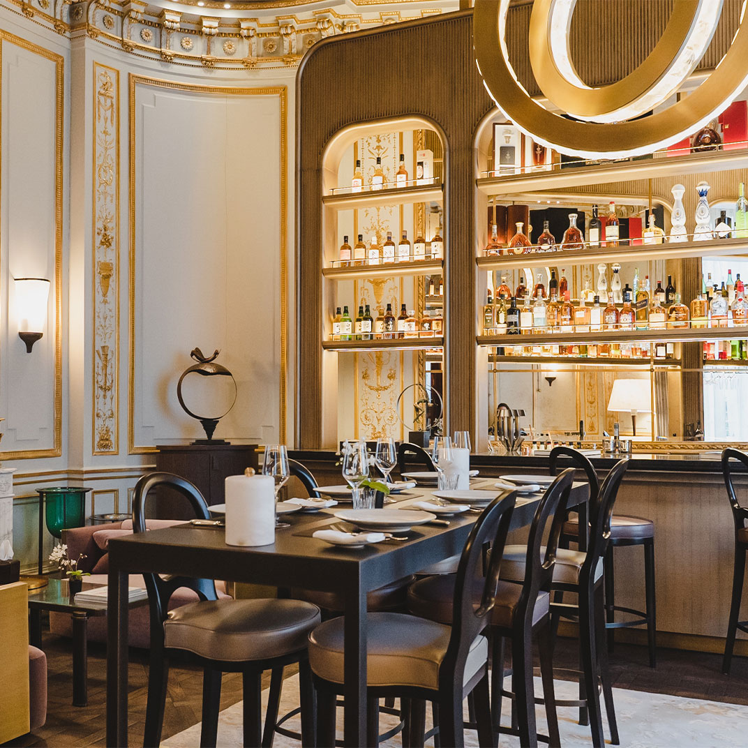 In addition to the physical comforts you’ll have round-the-clock butler service, not to mention the run of the rest of the house; the common spaces are even more ornate and atmospheric than the accommodations. And despite its small size, the Villeroy has a full-service spa. The restaurant and bar are no less impressive than anything else about the hotel — Trente-Trois has earned one MICHELIN Star, while the Bar Jean Goujon retains the gold leaf molding of the original mansion, and possesses an unparalleled selection of Japanese whiskies.