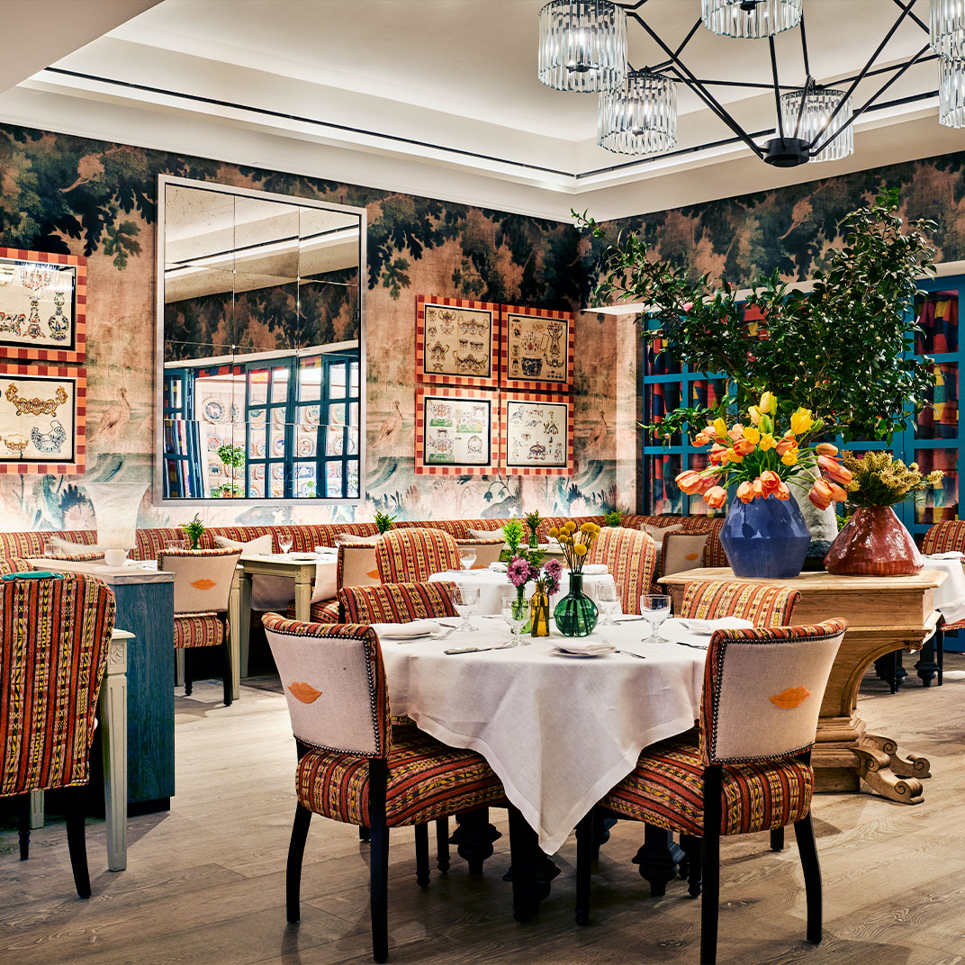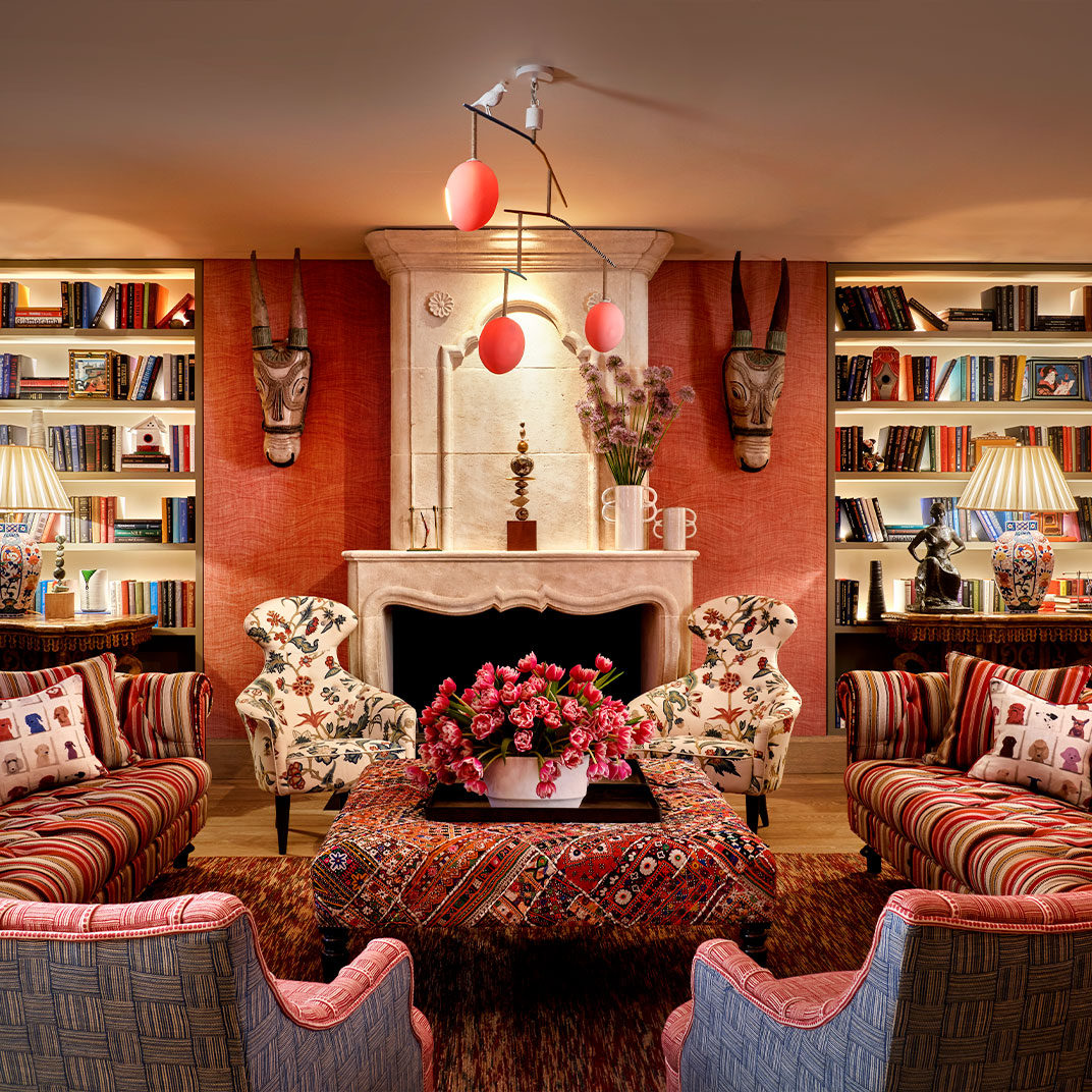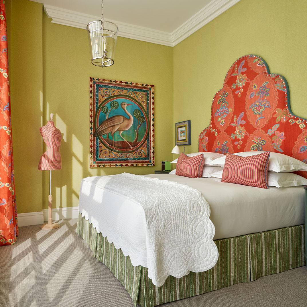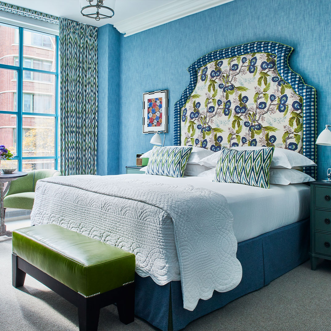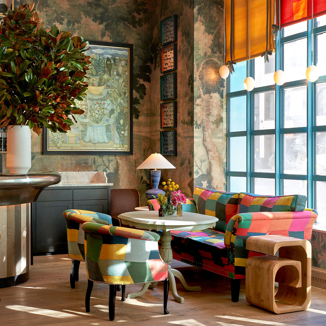 Kit Kemp’s Firmdale hotels are practically a genre unto themselves — luxurious yet lively, they combine country and city aesthetics, and feel glamorous and cozy at the same time. Colors, in particular, run rampant, and that’s particularly true of the Warren Street Hotel, whose bright blue façade stands out among its red brick Tribeca neighbors. And though they’re uniformly well-located in some of London and New York’s finest neighborhoods, they feel, in a way, like self-contained worlds apart from their surroundings.