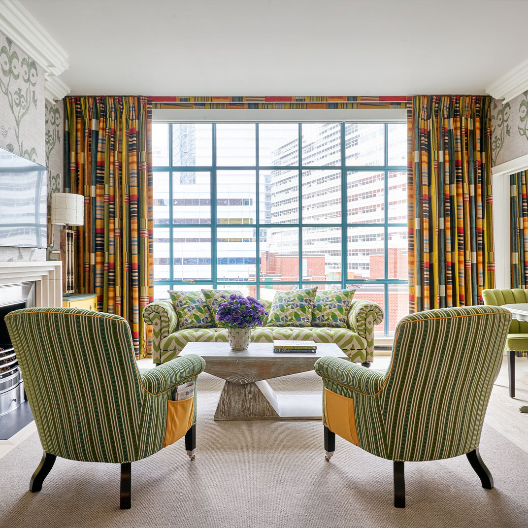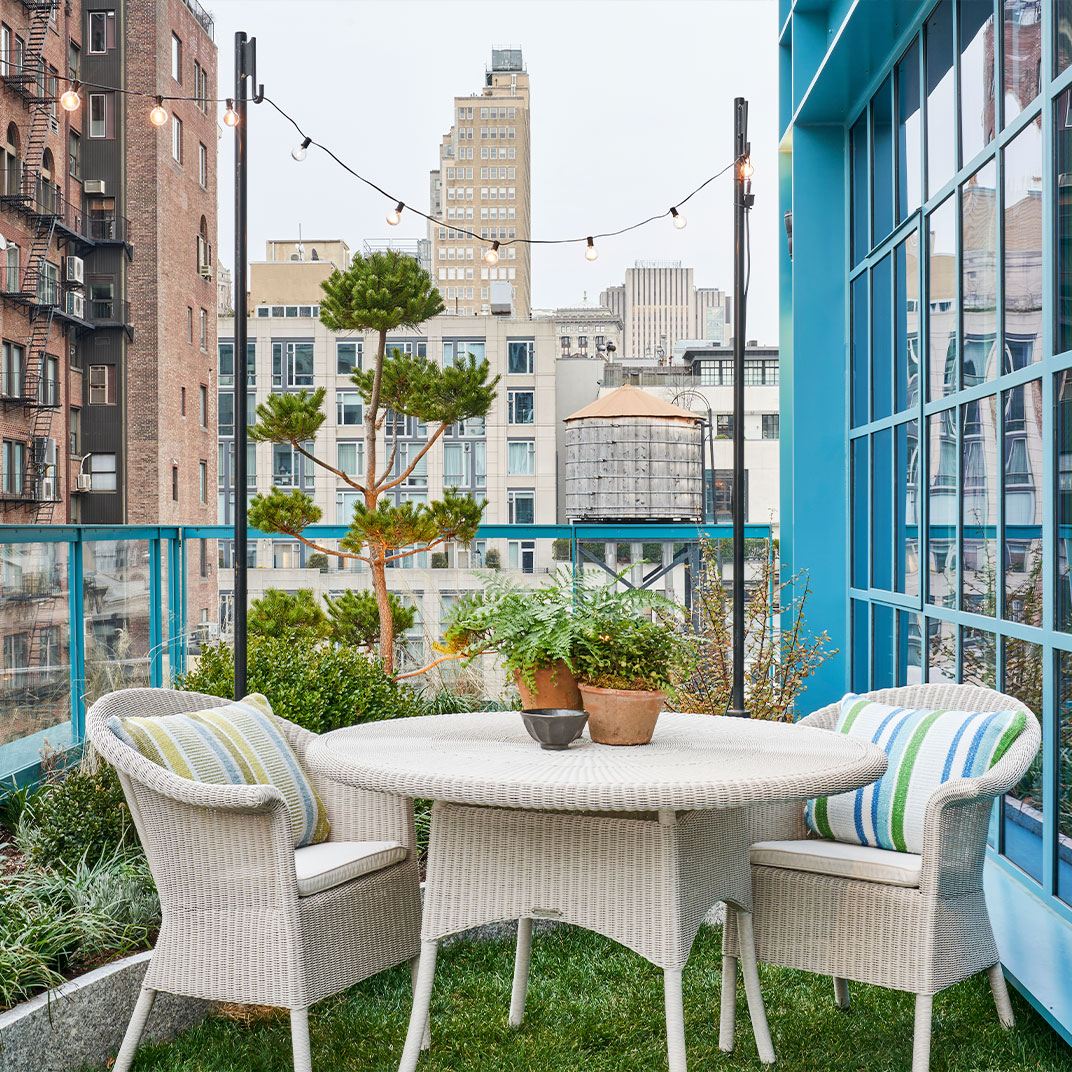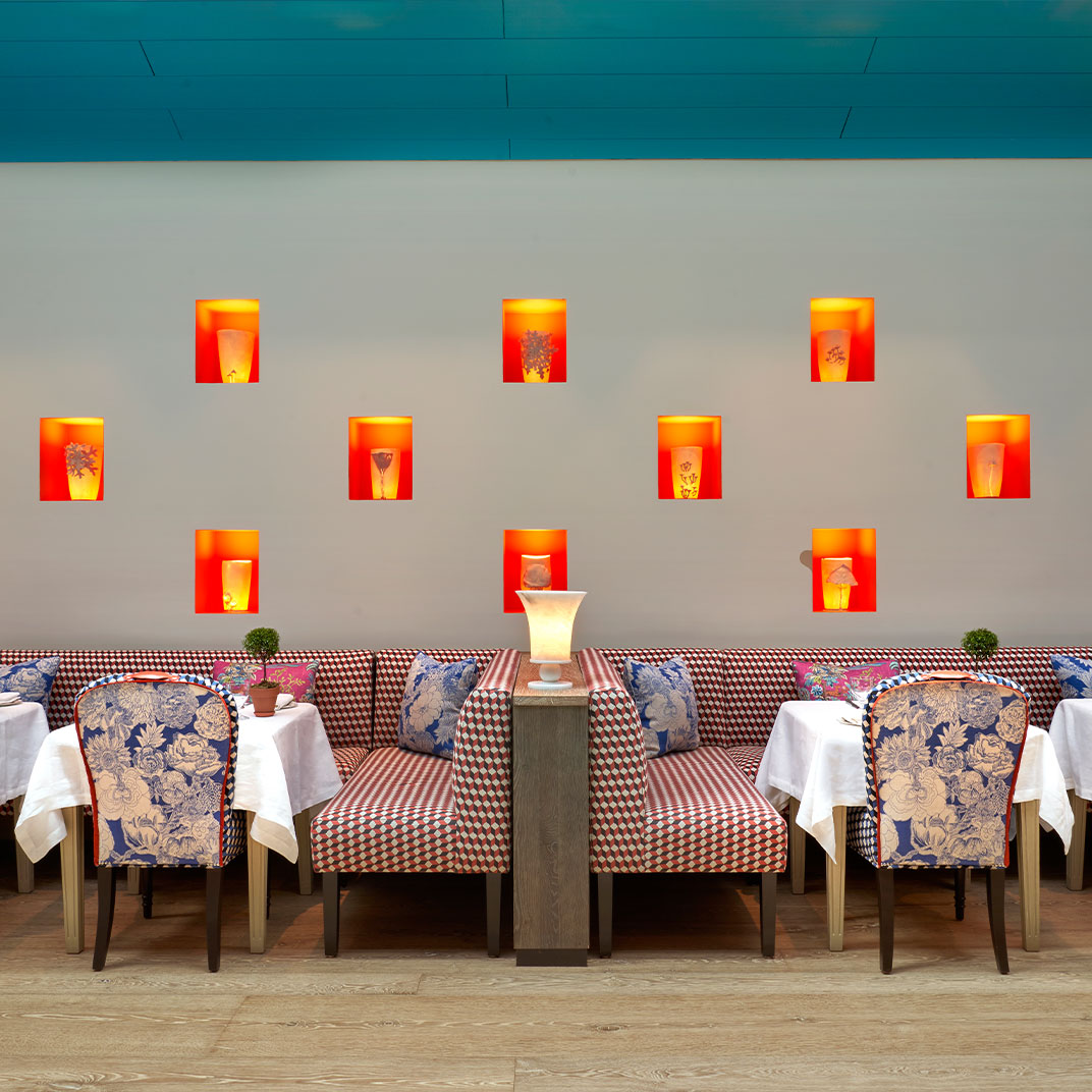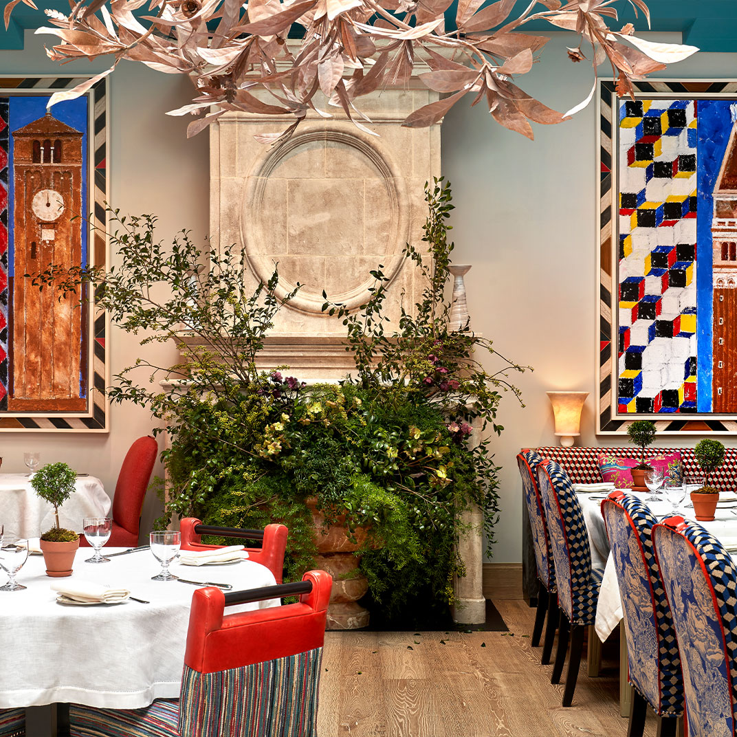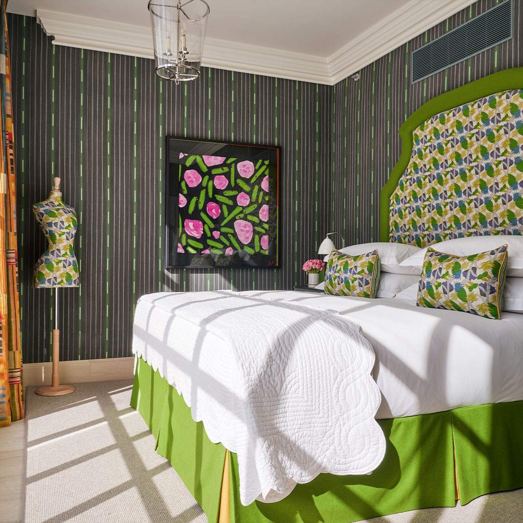 Kit Kemp’s Firmdale hotels are practically a genre unto themselves — luxurious yet lively, they combine country and city aesthetics, and feel glamorous and cozy at the same time. Colors, in particular, run rampant, and that’s particularly true of the Warren Street Hotel, whose bright blue façade stands out among its red brick Tribeca neighbors. And though they’re uniformly well-located in some of London and New York’s finest neighborhoods, they feel, in a way, like self-contained worlds apart from their surroundings.
