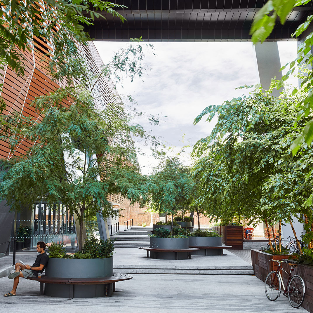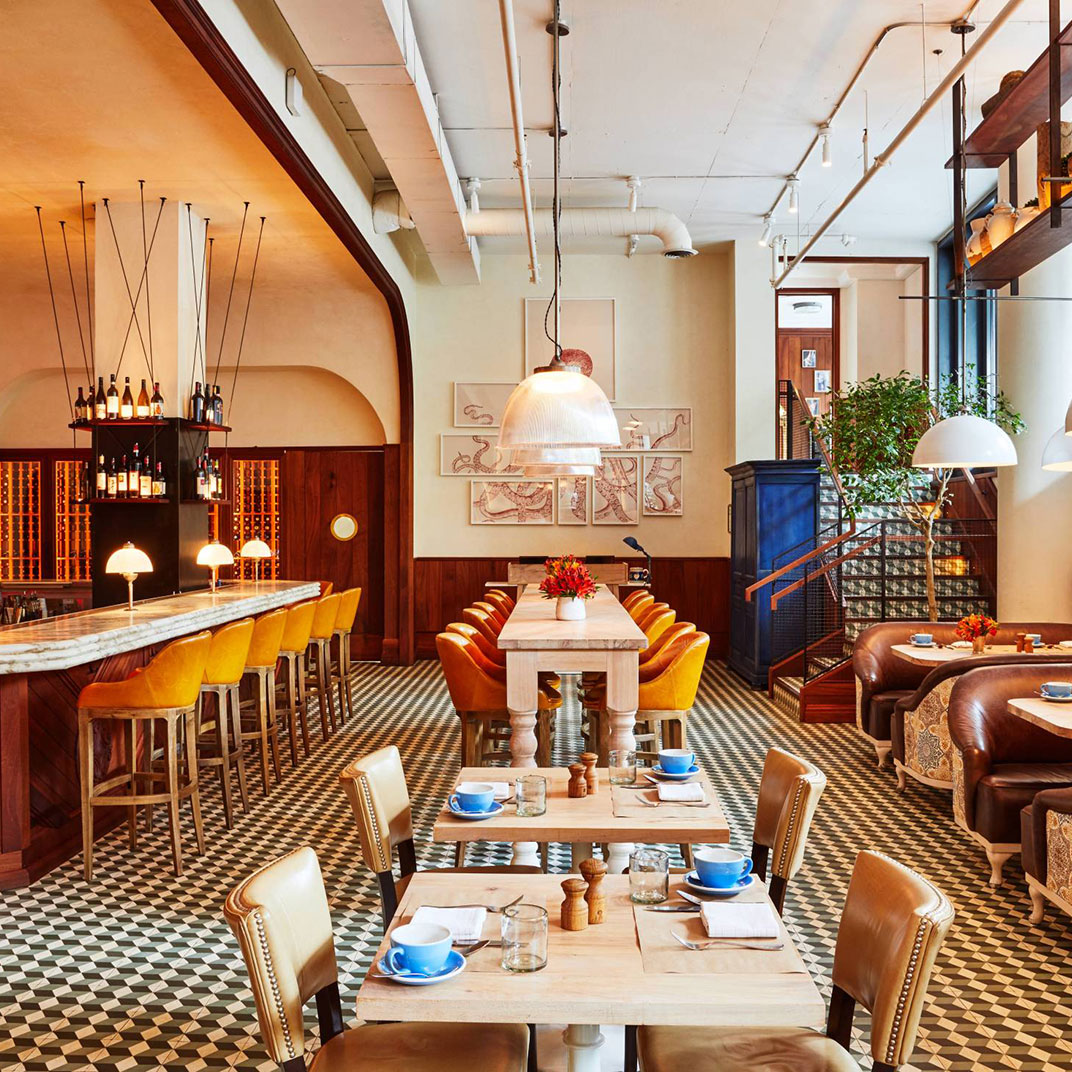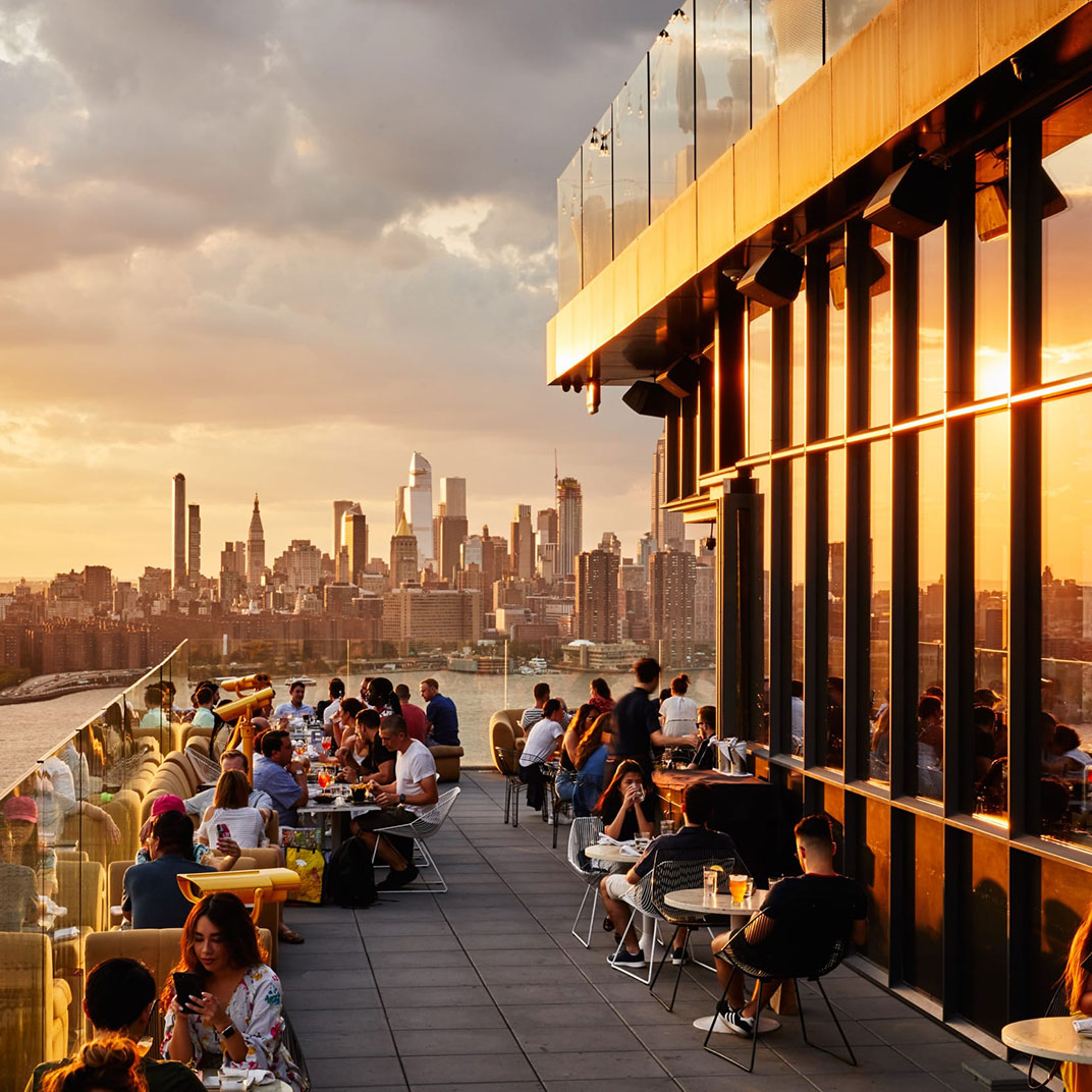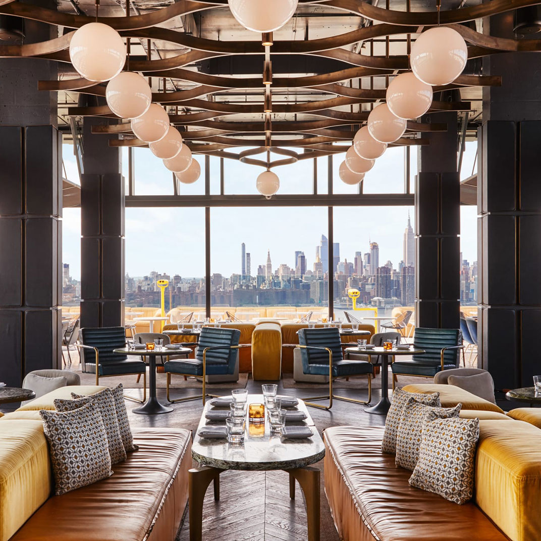 Also a rare luxury, at least for Williamsburg: the rooftop bar, with its own outdoor terrace, offering dizzying views over the streets of Brooklyn and a picturesque sunset panorama of the Manhattan skyline. The bar, Westlight, serves food by Andrew Carmellini, whose Italian restaurant, Leuca, breathes new life into wood-fired concept cuisine. And in all of the William Vale’s public spaces, locals are welcome to mix with hotel guests — that includes, season permitting, the fourth-floor terrace with its sixty-foot outdoor pool. (It’s a hot ticket; reservations are required, and earn you a three-hour time slot.)