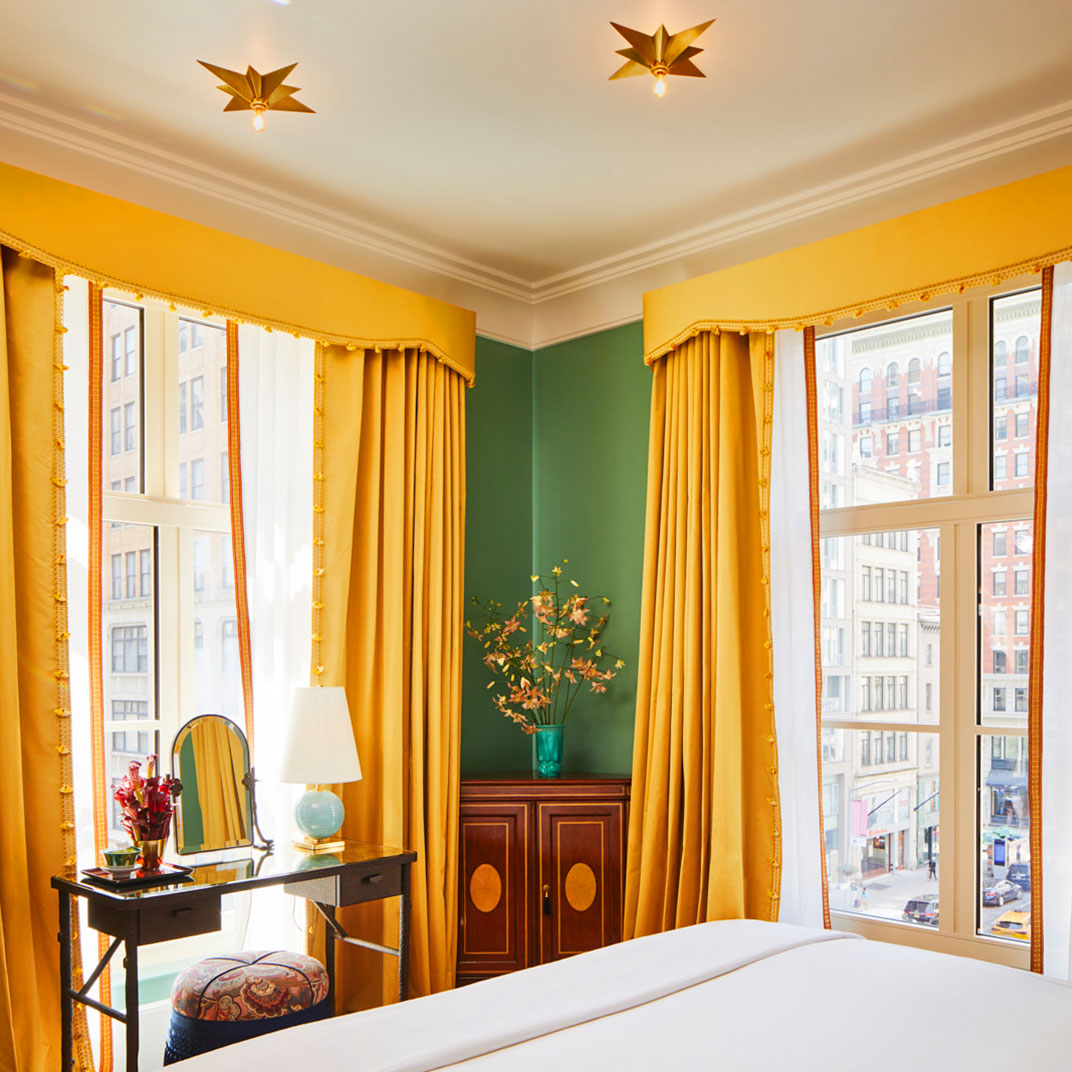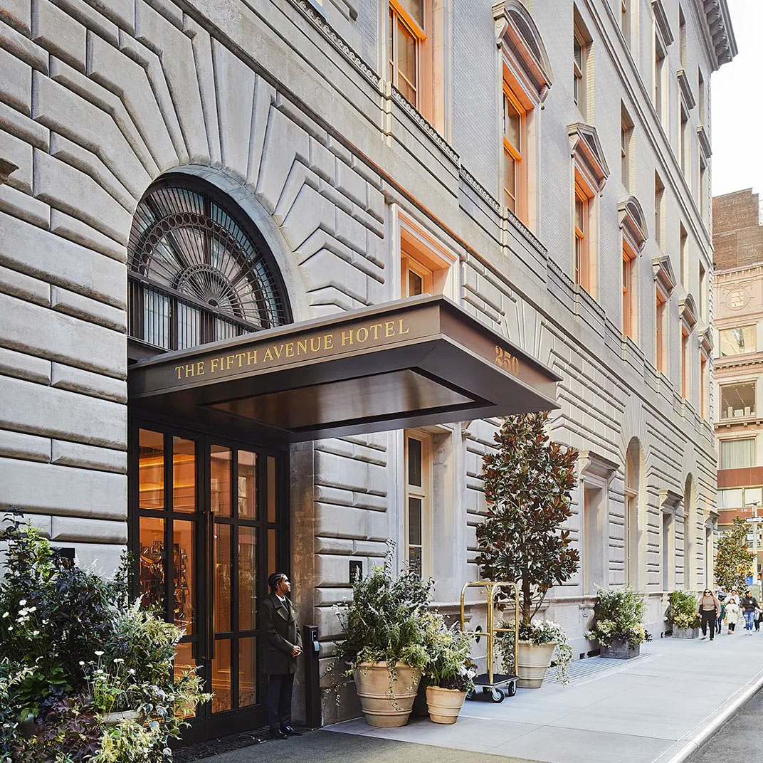 Named for one of New York’s most iconic thoroughfares, the Fifth Avenue Hotel is more than just one hotel among many in the city’s thriving NoMad neighborhood. Architecturally, it spans more than a century, combining a 1907 Renaissance-style structure by the original Penn Station architects with a modern 24-story glass tower. And inside, the Gilded Age glamour of its public spaces serves as the inspiration for designer Martin Brudnizki’s fantastically colorful and ornate rooms and suites.