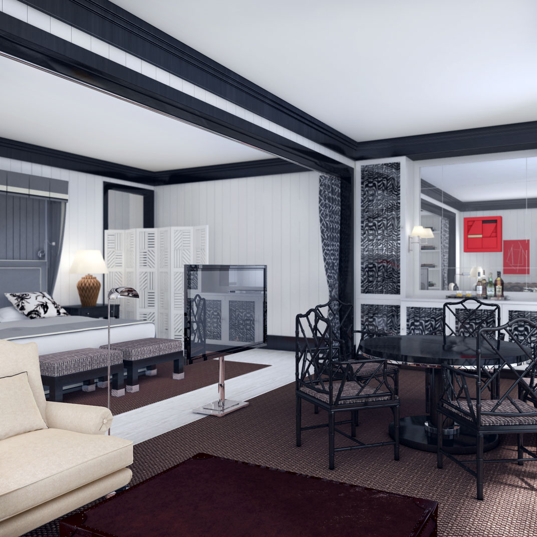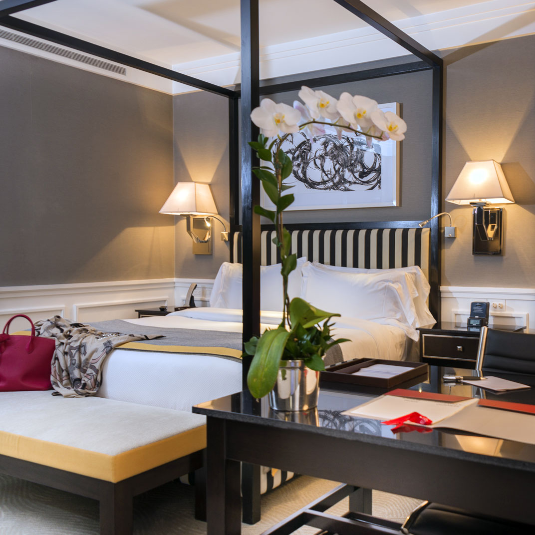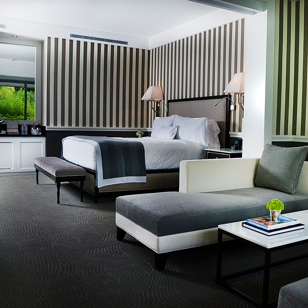 Guest rooms are plush and quiet, furnished with modern four-poster beds and spacious bathrooms with marble fixtures and rain showers. The look is classic and sophisticated, the subdued color palette of white, beige, and black warmed up by the high-tech lighting system. Standard amenities include Illy coffee machines, iPod docks, goose down comforters, 42-inch flat-screen TVs, bath products by Acqua di Parma, 24-hour room service, and free wi-fi. Higher-end rooms and suites have private patios with daybeds and views of the mountains.