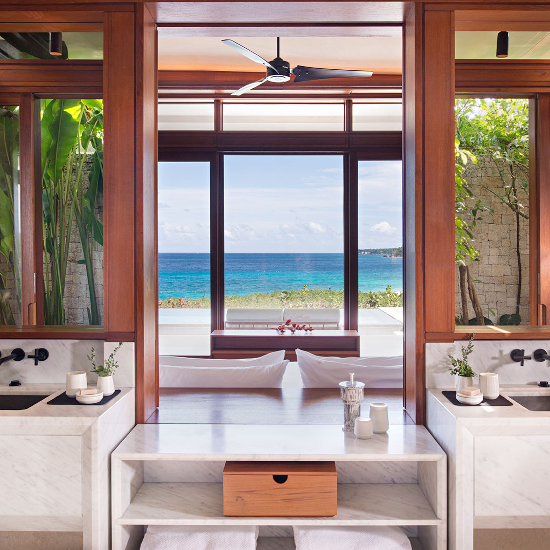 Located on a wildly beautiful stretch of the Dominican Republic’s northern coast, Amanera is remote, and that’s part of the appeal. Like the other Aman resorts, it’s elegant and ecologically sensitive, sprawling and self-contained. Privacy is paramount: all accommodations are located within free-standing casitas scattered along the shoreline cliffs, each offering unobstructed views of the sea. Airy and modern, this is indoor-outdoor living at its best. There’s a minimalist Japanese feel to the high ceilings and wood-framed doorways, the glass panes and low tables and hand-carved screens. The building materials and artwork, however, are locally sourced — being grounded in a specific location is an important part of Aman’s ethos. Each casita features an ocean-facing terrace with lounge space and a dining area, ideal for an al fresco breakfast. Many casitas also feature private swimming pools.