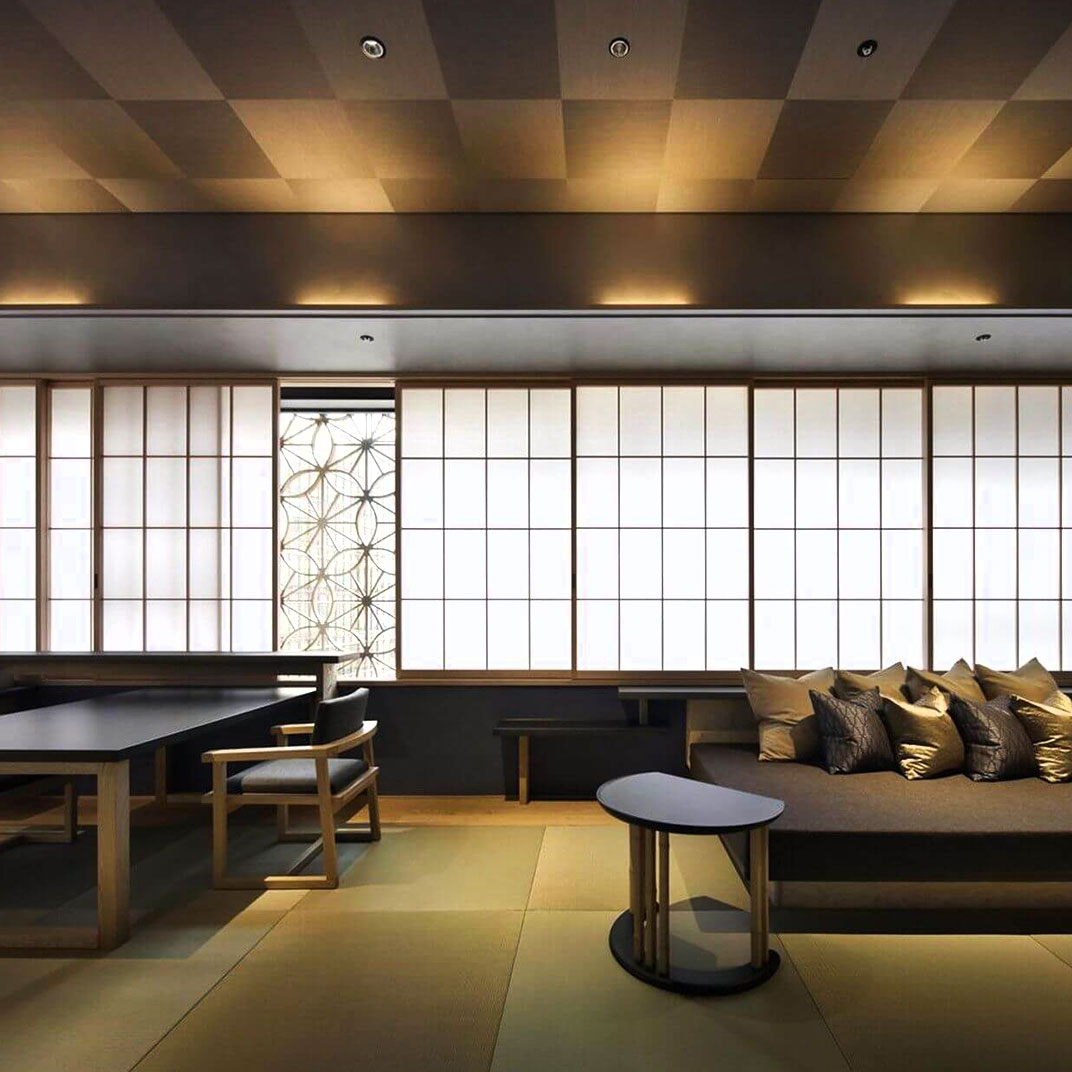 Where there’s a ryokan, there’s an onsen, a spring-fed bath — and even here, in central Tokyo, there’s a hot spring, one whose waters emerge from nearly a mile underground. The hotel’s ground-floor entry bears a convincing resemblance to a Zen garden, and by the time you’re inside, it’s clear that this is a hotel unlike any other: a ryokan in both form and function, but one that’s contemporary in style and imposing in scale, as befits its unusual location.