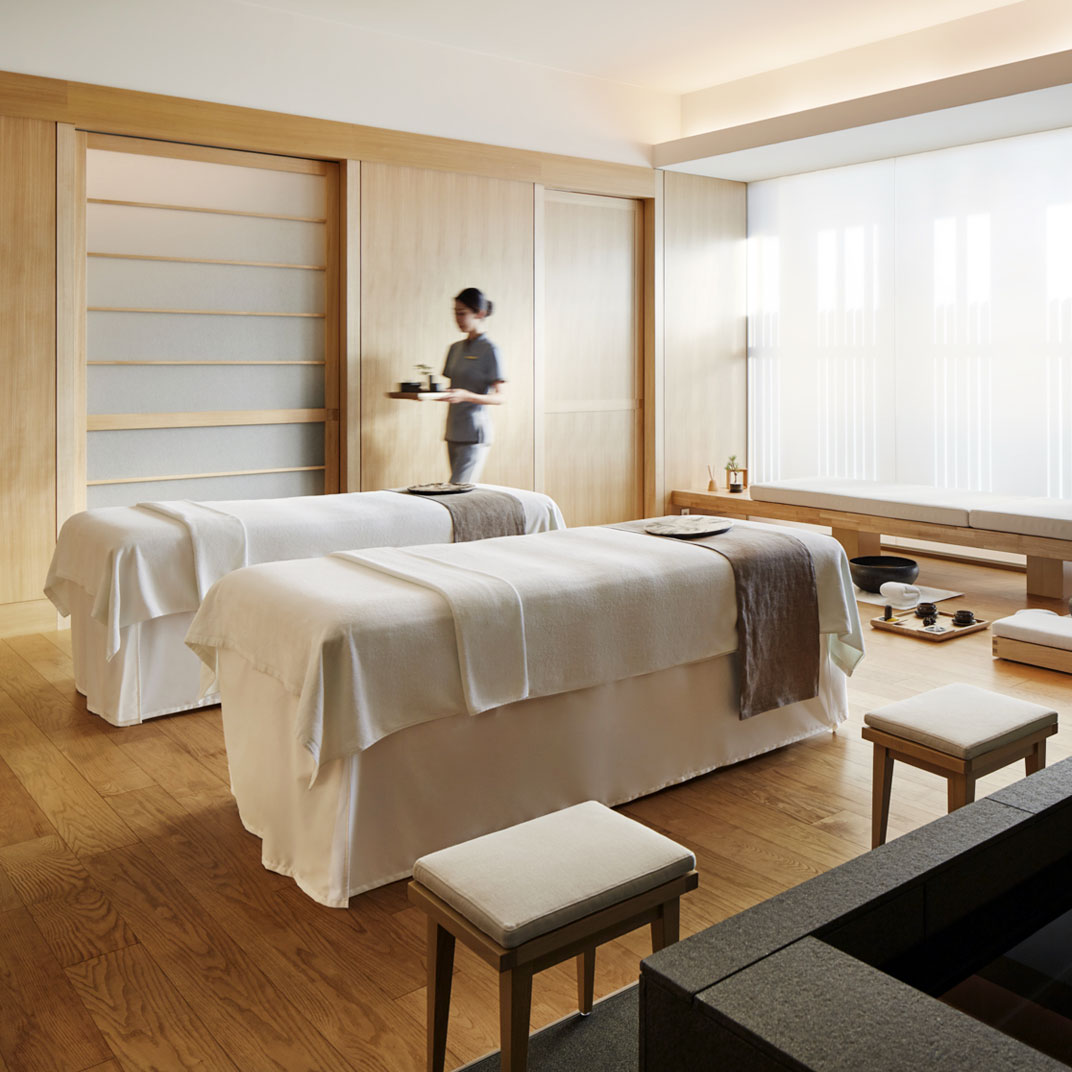 Turns out the top of a Japanese skyscraper is tailor-made for the kind of quiet seclusion an Aman resort is tasked with providing. Once you’re on the 33rd floor of the Otemachi Tower, the city streets are a mere memory. The modernist spaces are calming to a degree that’s awe-inspiring, almost religious. The interiors throughout, in fact, were designed by Kerry Hill, the Australian architect who’s responsible for more than a few other Aman resorts, and who’s clearly quite comfortable remaining faithful to Japanese idiom. It’s not quite the full tatami experience, but it’s a fairly traditional one all the same.